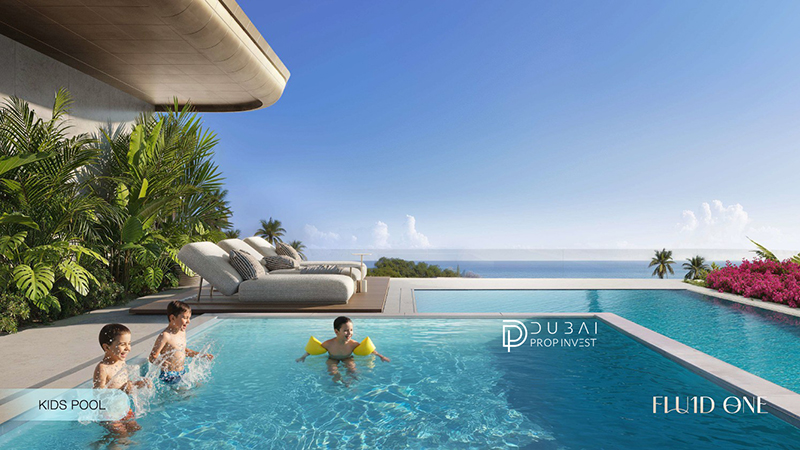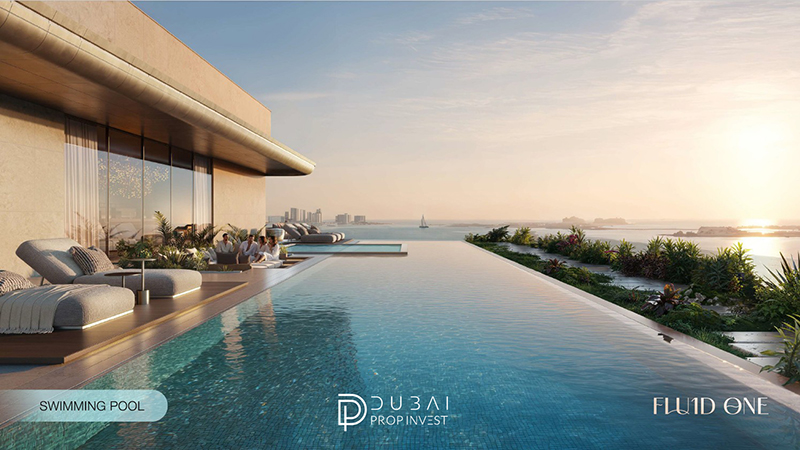 بر خلاف اکثر پروژه ها که استخر را در طبقات پایینی و در سایه ساختمان های مجاور قرار می دهند، در فلوئید وان، استخر اینفینیتی بزرگسالان، استخر اختصاصی کودکان و کلوپ تفریحی (Clubhouse) همگی روی پشت بام (Rooftop) طراحی شده اند. این یعنی شما هنگام شنا یا استراحت در کلوپ، منظره ای بی پرده و ۳۶۰ درجه از خط افق دبی و تلاقی آسمان با دریا را در اختیار دارید.